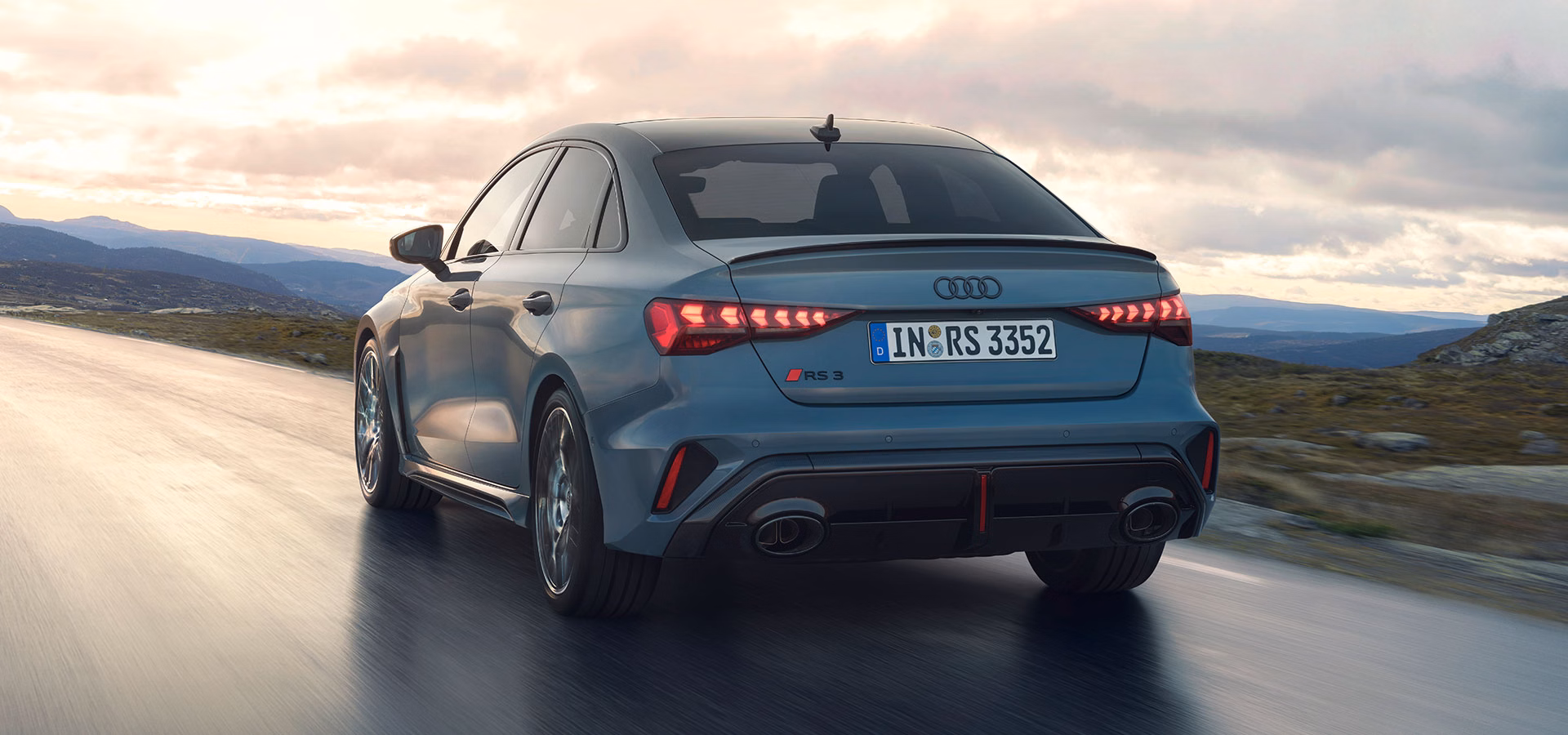 The RS sport exhaust system with black gloss, oval tailpipes give the new Audi RS 3 Sedan that full-bodied sound that hints at the engine’s power when you step on the accelerator.